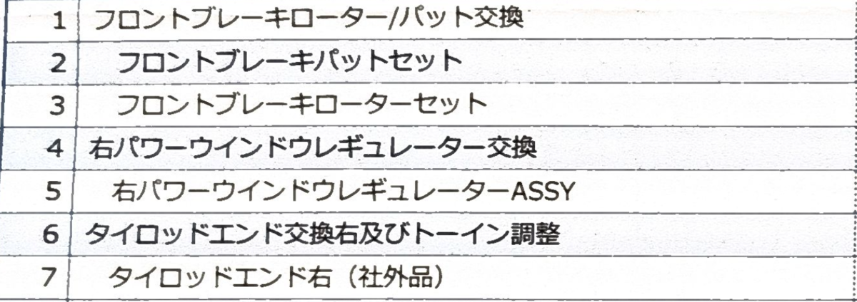 これに加えて、右パワーウィンドウ不調の話をすると、レギュレーターを交換ですねというお話に。