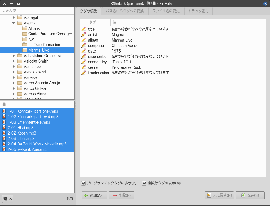 Ex Falso は Quod Libet というプレーヤー付属のタグエディタです。Ex Falso だけビルドできないかな?と思ったけど、一体でビルドが必要そうでした。
